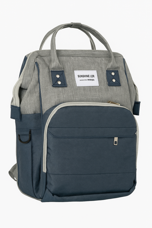 2-in-1 Diaper Bag & Portable Baby Bed – 7pc Travel Backpack (Blue/Grey)