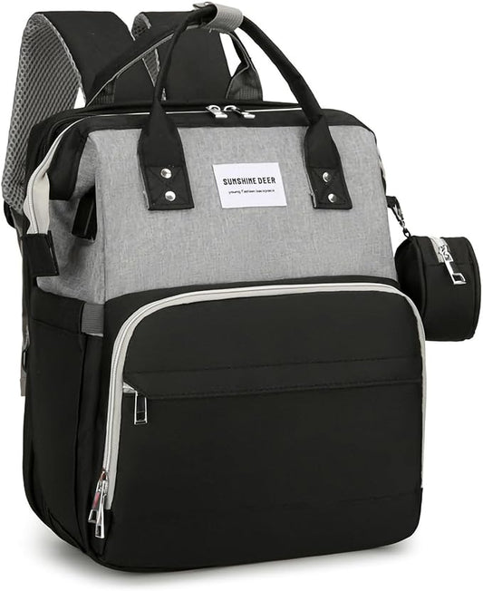 2-in-1 Diaper Bag & Baby Bed – 7pc Travel Backpack (Light Grey)