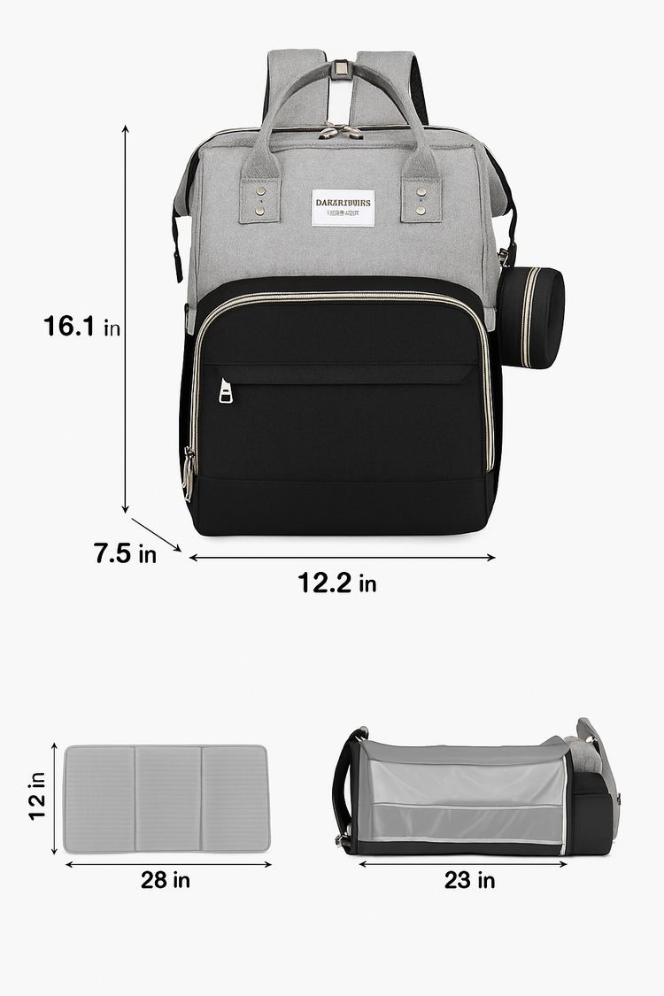 2-in-1 Diaper Bag & Baby Bed – 7pc Travel Backpack (Light Grey)